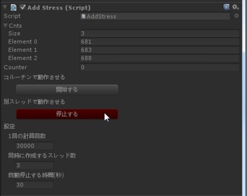 Unityで負荷かけたいと言われちょっと調べたけど見当たらなかったので試しに作ってみた。 Unityは非同期処理のコルーチンとかあるけど、Unityはシングルスレッドなのでコルーチンももろにアプリに影響が出るので、別スレッドで処理させるようにもしてみた。 …